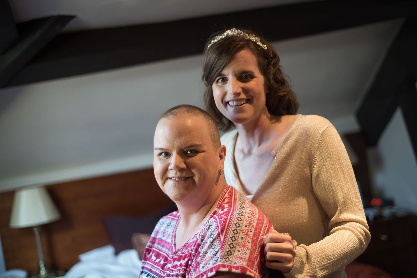 Photo © Helen Errington: Me with my sister on my wedding morning; 8 weeks before her death