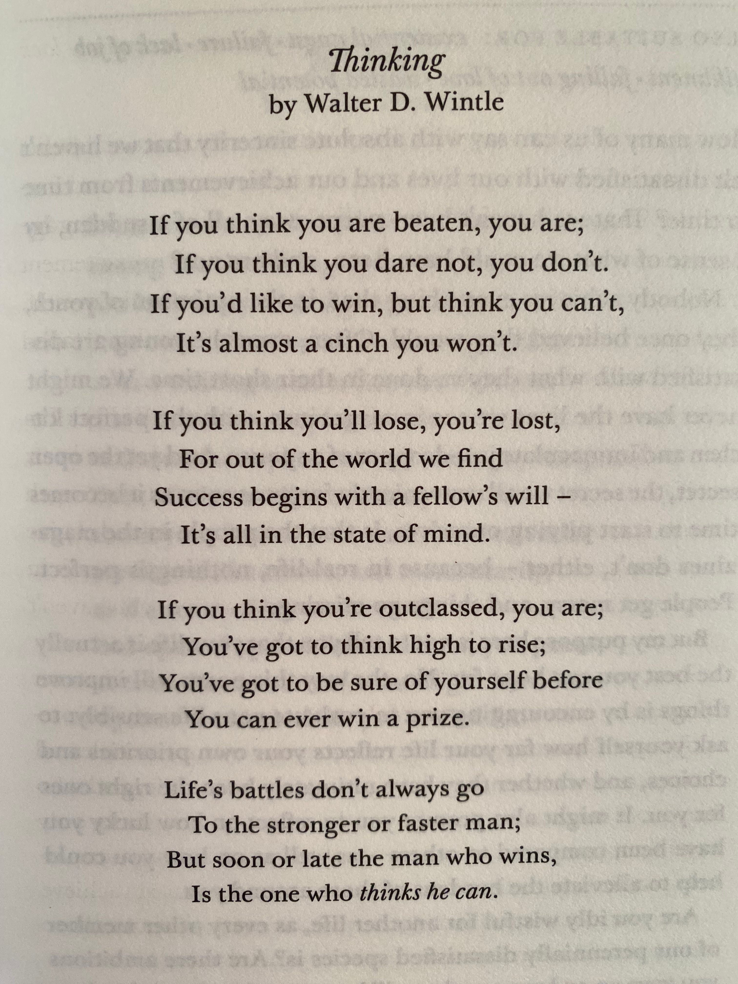 As I begin to wrap up this post, I’d like to share with you a wonderfully uplifting poem that serves as a perfect antidote to self-doubt: